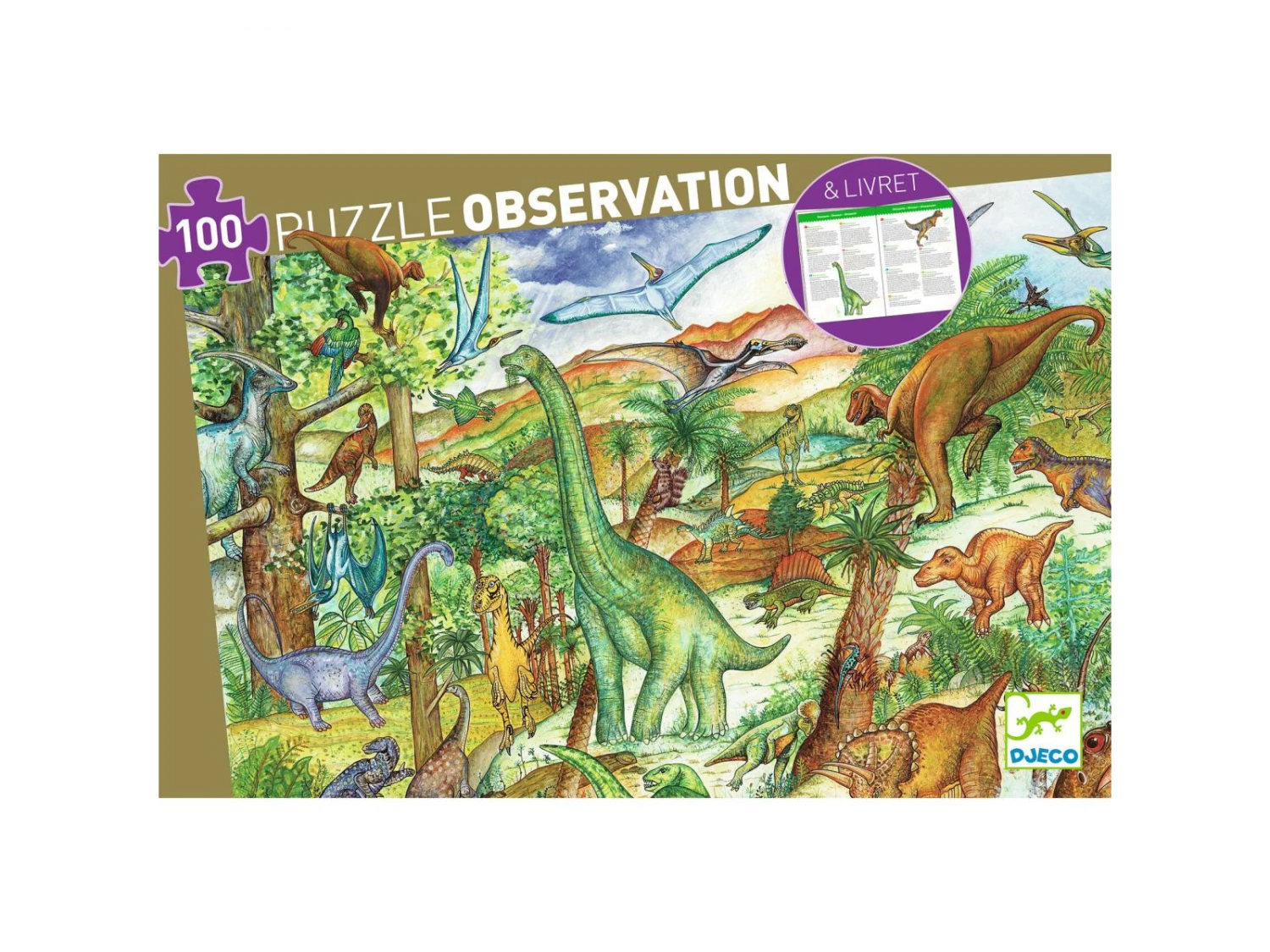 Découvrir les dinosaures en s’amusant ! Un puzzle de 100 pièces, un poster et un livret décrivant leurs caractéristiques et leur mode de vie.