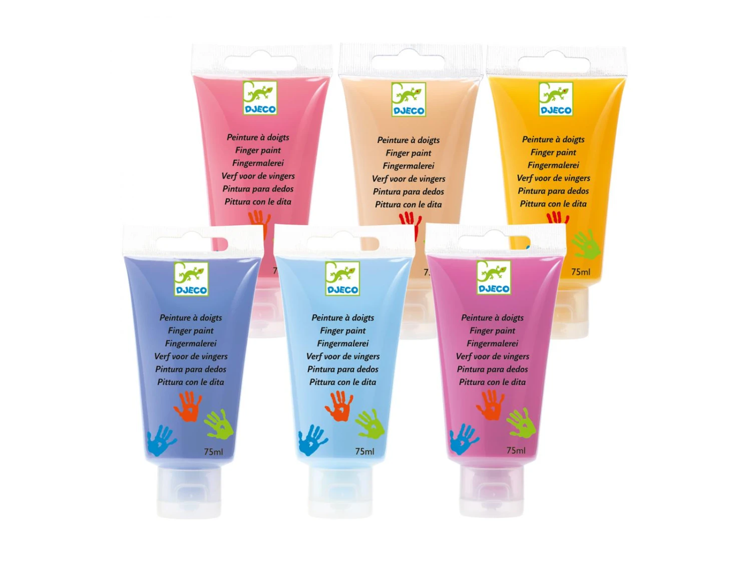Un coffret de peinture à doigts destiné aux jeunes enfants, dès 18 mois. Idéal pour les premières patouilles !