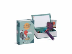Coffret avec écran de projection, joliment illustré ! Conçu comme un livre, contient une lampe à projeter, 5 disques sur l’univers des grands voyages et 5 cartes postales. Développe l’imaginaire des petits et offre de précieux moments de complicité.