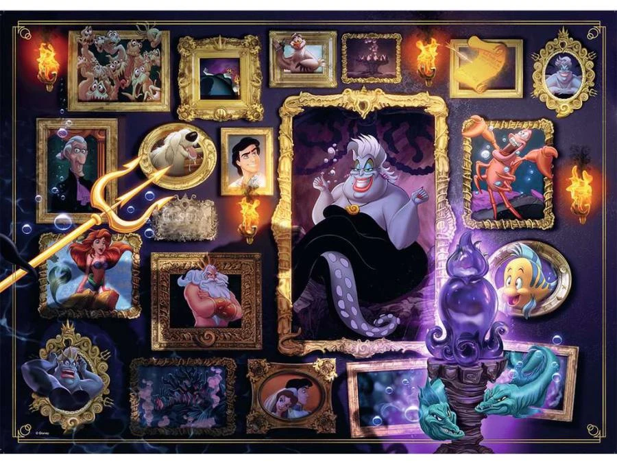 Pour les puzzleurs entraînés, le format 1000 pièces est idéal pour profiter de l’activité du puzzle, propice à la détente et à la relaxation. Chaque pièce a une forme unique et permet un assemblage parfait de l’image choisie. Inspirée du jeu de société Disney Villainous par Ravensburger, cette illustration exclusive met à l’honneur l’univers malfaisant et intriguant d’Ursula, la célèbre méchante Disney du monde d’Ariel la petite sirène ! Pièce après pièce, révélez tous les détails des scènes les plus mémorables de ce dessin animé d’exception, et plongez au cœur des ténèbres en compagnie de la terrible Ursula et de ses pouvoirs maléfiques !